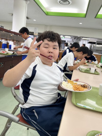 文字入力は、配付された原稿のとおりに、正確に速くパソコンで文章を入力することを目指します。喫茶サービスは、カフェ店員としての基本的なお客様への対応と、後片付けを行います。3人とも、とても緊張していましたが、練習の成果をしっかりと発揮できました。1・2年生は来年に向けて更なるスキルアップを目指し、3年生は就労先での仕事に生かせるよう頑張っていきます。